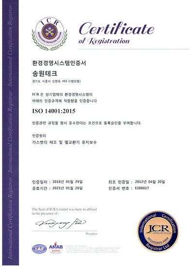 | 2022.09 | 안전보건경영시스템 인정(IOS45001) |